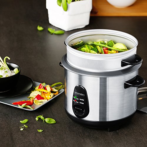 Verwendung: Dieser vielfaltige Reiskocher von Arendo bietet Ihnen die Moglichkeit, Reis nach Ihren Wunschen zu kochen. Dank der eingebauten Warmhaltefunktion bleibt Ihr Reis auch noch nach einer langeren Zeit warm und geniessbar. Das hohe Fassungsvermogen von 1,5l bietet die Moglichkeit, besonders grosse Mengen an Reis zu kochen.