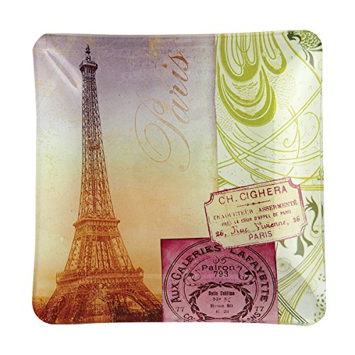 -. Feature : Decorative glass dish / 4.5-inch square; Hand wash only / Elegant paris-themed Eiffel Tower design / Perfect Size for soap, candles and small items / Look to Mudlark for Paper products, handcrafted soaps and candles that are both beautiful and environmentally Smart
