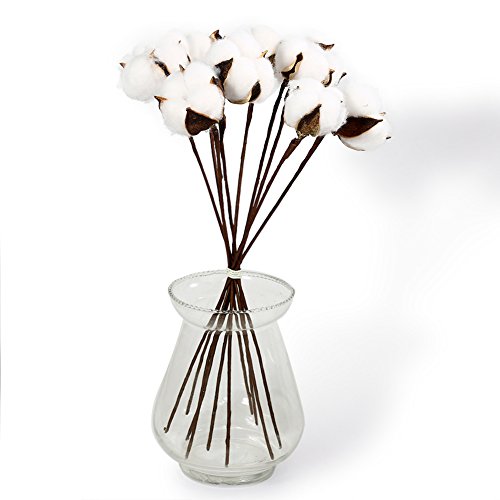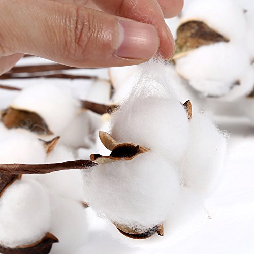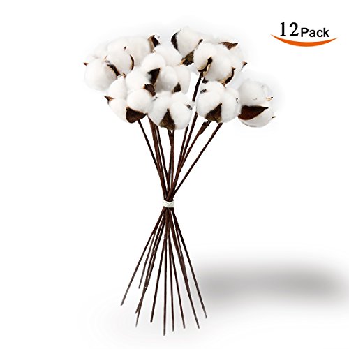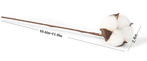 Cade Rustic Decor- Cotton Stems-12 Inch Cotton balls Farmhouse Style Display Filler-Real Cotton-Flexible Stems for Home Decor (12)