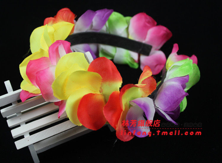 Brand: Lin FangName: Wreath head hoopMaterial: plastic + flowerFlower size: 8cm diameter, head band size is about 13x13cm I