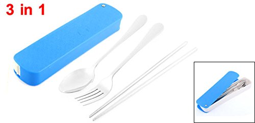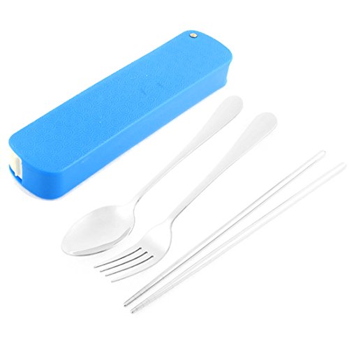 uxcell® Home Spoon Chopsticks Fork Tableware Flatware Cutlery Set w Case Blue