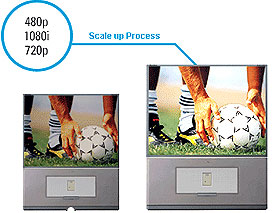 | The DVD-HD931 goes beyond the typical progressive-scan DVD player by adding a built-in video scaler that permits output to a HDTV. |