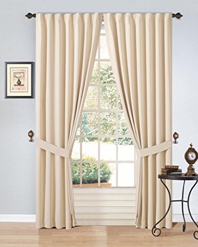 2-Panels of 52 Inch. W x 63 Inch. L each (BACK-TAB Top Window Panel), 2-Tiebacks
