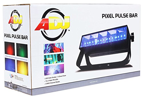Studio : ADJ Products Publisher : ADJ Products Binding : Electronics Product Description Pixel Pulse Bar Add more creativity to your lightshow with the ADJ Pixel Pulse Bar. This fixture features fifteen 3-Watt 3-in-1 RGB TRI LEDs, and 5-Zones of pixel control that allow users to highlight five different colors on the fixture. 0