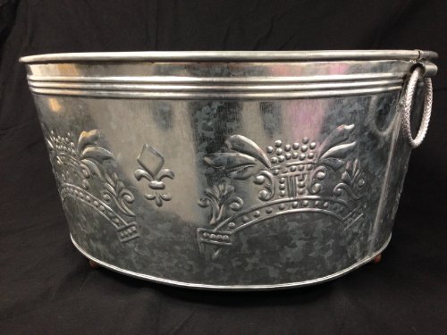 -. Brand : KINDWER -. Color : Silver -. EAN : 0692789920107 -. Feature : Free Shipping on all orders! / Made of durable galvanized steel / Round Shape with metal handles and feet / Can be used as a a beautiful planter or flower holder / Manufacturers Close-out - only a few left! -. Label : Original Rug Company -. Manufacturer : Original Rug Company -. Model : A029 -. MPN : A029 -. PackageQuantity : 1 -. PartNumber : A029 -. ProductGroup : Kitchen -. ProductTypeName : KITCHEN -. Publisher : Original Rug Company -. Size : 18x18x9" -. Studio : Original Rug Company -. Title : Large 18" Galvanized Fleur de Lis Round Party Tub -. UPC : 692789920107
