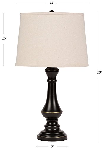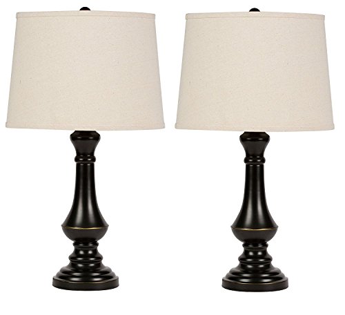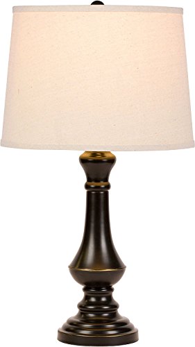 INSPIRED VINTAGE ELEGANCE: The all metal traditional fluted pillar style base has an oil-rubbed bronze finish with brass highlights. The fashionable drum shaped lampshade is a natural colored off white.