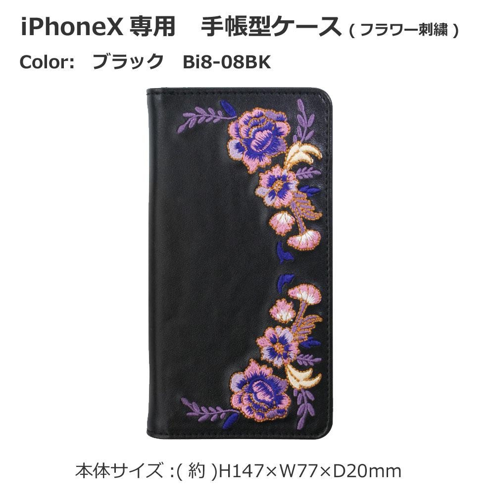 花柄の刺繍が愛らしいiPhoneX専用手帳型ケース!