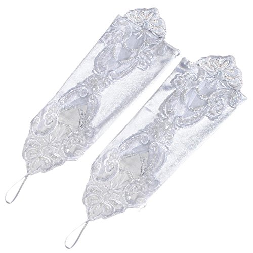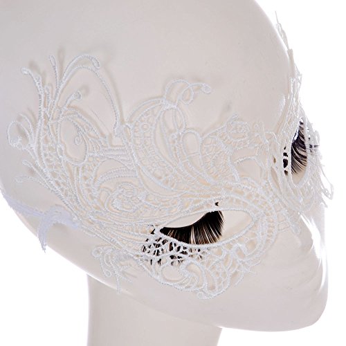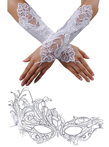 Ciaoed Sexy Masquerade Mask Women Lace Face Eye Phoenix Mask with Fingerless Gothic Wedding Gloves for Venetian Carnival Costume Party, White