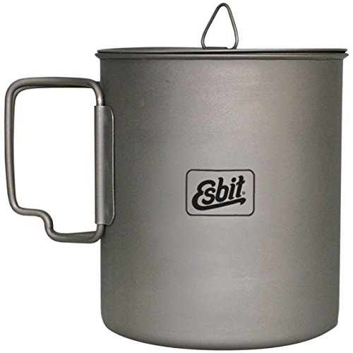 Esbit 750ml (25 oz) Ultralight Titanium Cooking Pot with Hinged Grip and Mesh Stow Bag