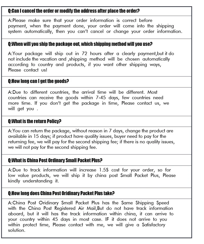 Promise:All checked be fore shipping