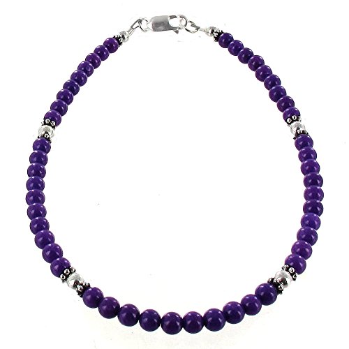 -. Title : Womens Purple Dolomite & Sterling Silver Ladies Beaded Gemstone Anklet with Daisies