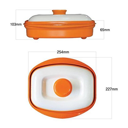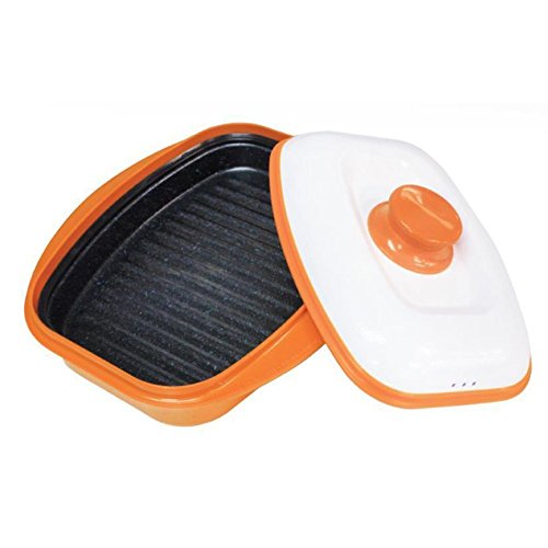 Includes grill pan, lid, and recipe book Nonstick ceramic coating for easy cleanup For microwave cooking only Microwave-safe up to 464F Measurements: Inside without lid 10"L x 9"W x 2-1/2"H; Inside 7"W x 9-1/4"L; holds 3 cups/24 oz Hand wash only Made in Korea