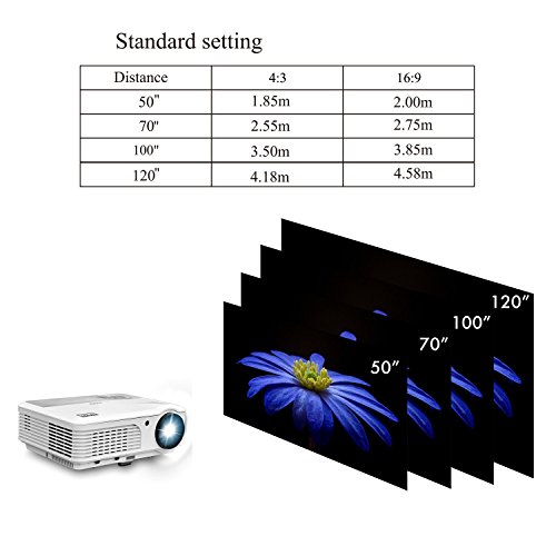 Aspect ratio:16:9/ 4:3.Big screen 50-150" diagonal, projection distance: 3.87 -16.79FT. Built in dual stereo speakers, add external speakers via Audio out. Great for sharing videos/ games/slide shows with family, enjoy movie nights at home or outside, add fun to birthday party, BBQ, Christmas, Halloween