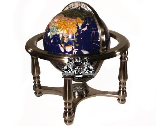 10" Tall Blue Lapis Ocean 4-leg Silver Table Stand Gemstone World Map Globe