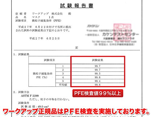 ・性能検査:、PFE(0.1μm 粒径の試験粒子を使用した場合の微粒子ろ過効率試験において99%以上(国内最高水準)。