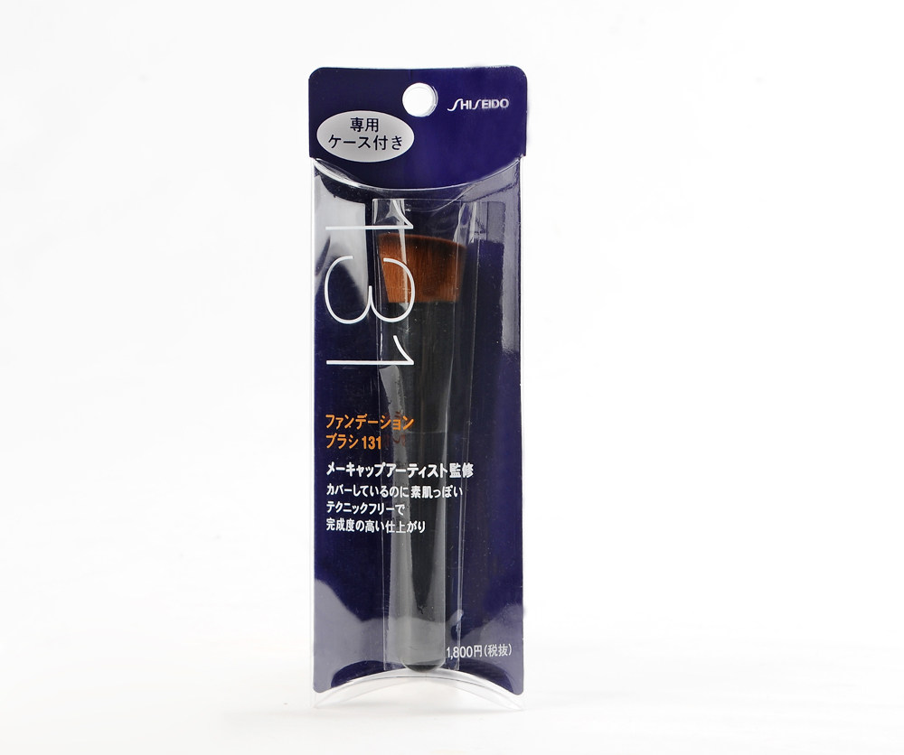 资 生堂131粉底刷,刷头呈平面斜坡状,刷毛密度高,抓粉效果好,斜角的设计能够使面部肌肤均匀上妆,刷头材质选用质地软硬适度的合成纤维,触感柔顺、晕染 性强,而且它温柔的刷感不伤害拉扯肌肤,无论是刷粉底液还是粉饼都可以轻松掌握,刷毛的材质、密度以及长度都达到了机制平衡,是一款非常容易上手的粉底 刷,轻松打造出自然清透的妆容效果。