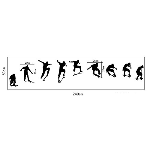 -. Brand : ufengke décor -. EAN : 0702646916928 -. Feature : Applies to any clean/dry/flat surface / Easy to apply, remove and reuse without leaving damage or residue / Comes in 1 sheet, sheet size:90cm x 60cm(35.4" x 23.6") / Recommend finished size:2.4m(W) x 0.5m(H), it can also be adjusted according to your preference -. Label : Ufingo -. Manufacturer : Ufingo -. Model : UT-WL0461 -. MPN : UF-WL0461 -. PartNumber : UF-WL0461 -. ProductGroup : Home -. ProductTypeName : HOME_FURNITURE_AND_DECOR -. Publisher : Ufingo -. Studio : Ufingo -. Title : ufengke® Fashion Silhouette of Skateboarding Wall Decals, Living Room Bedroom Removable Wall Stickers Murals -. UPC : 702646916928