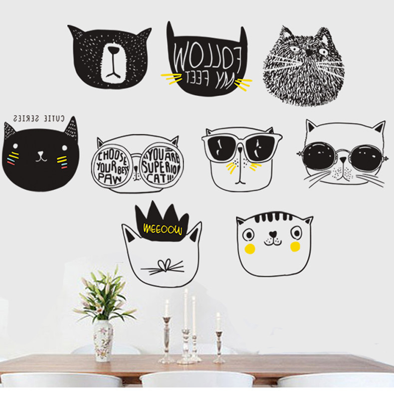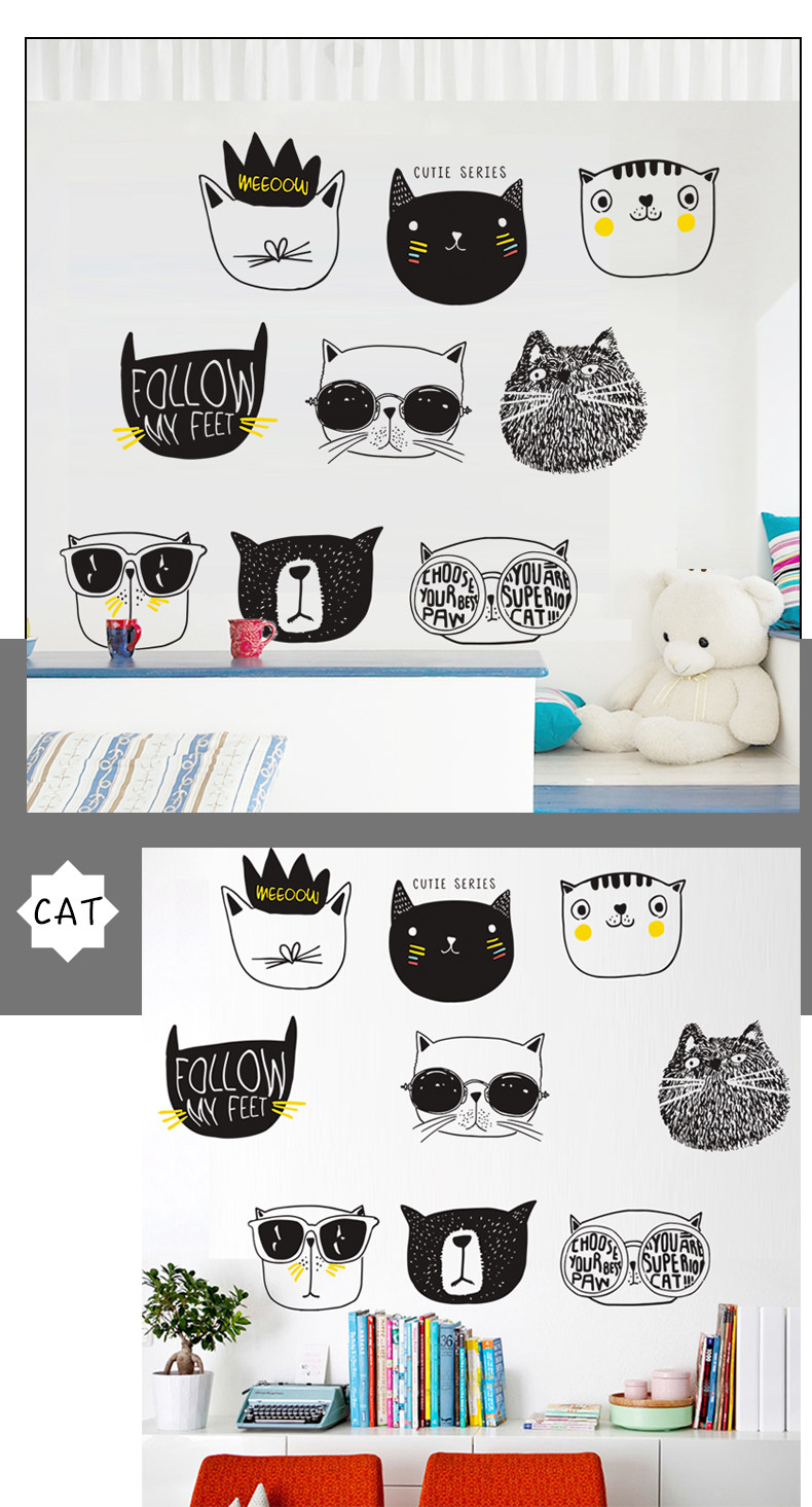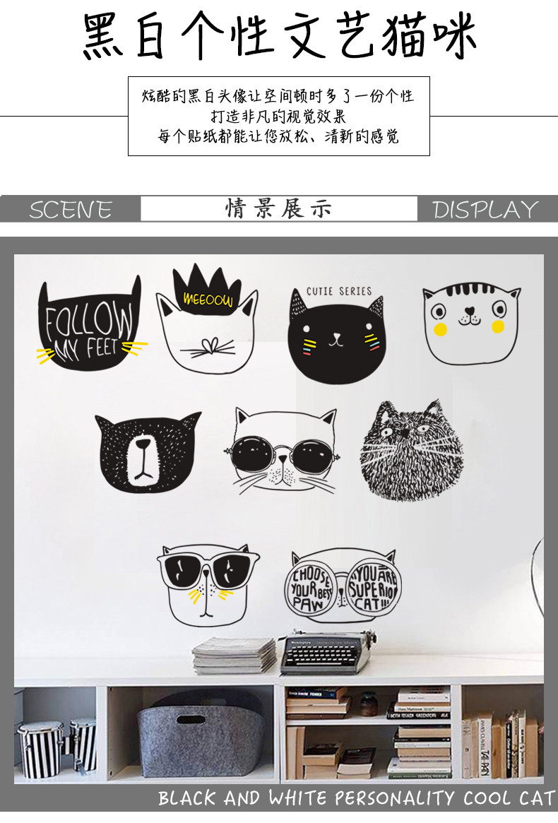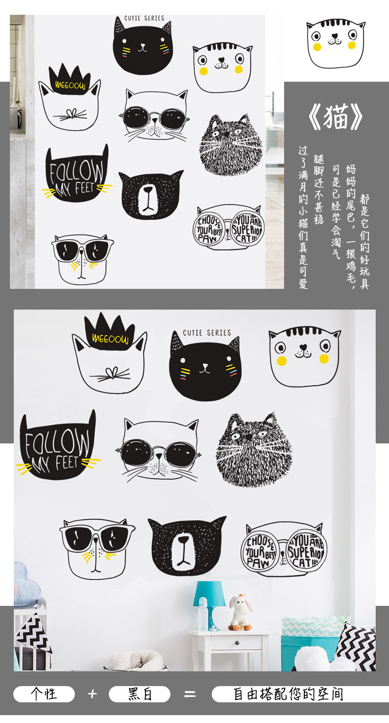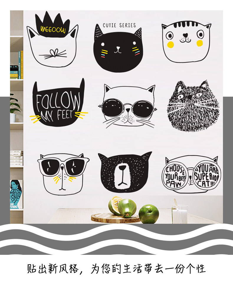 简约文艺猫咪墙纸贴画卧室房间温馨装饰品壁纸自粘大学生宿舍墙贴
