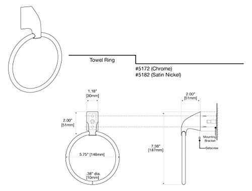 Gatco 5182 Quantra Bathroom Towel Ring, Satin Nickel