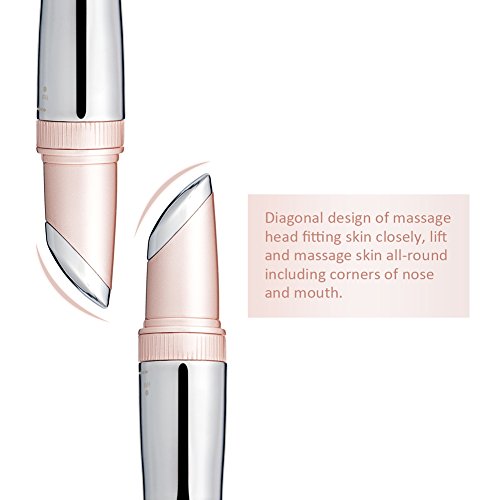 • Diagonal design of massage head fit skin closely,lift and massage skin all-round including corners of nose and mouth.