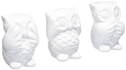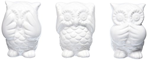 Urban Trends Ceramic Owl Figurine in PVC Packaging with Gloss Finish, White