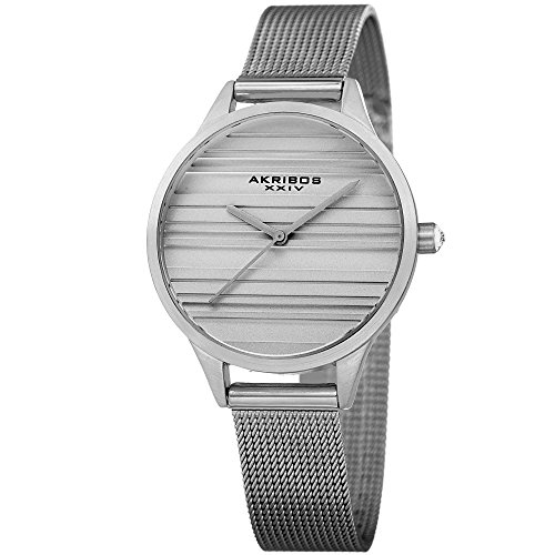 -. Title : Akribos XXIV Women's Quartz Striated Silver-Tone Mesh Bracelet Watch - AK1005SS