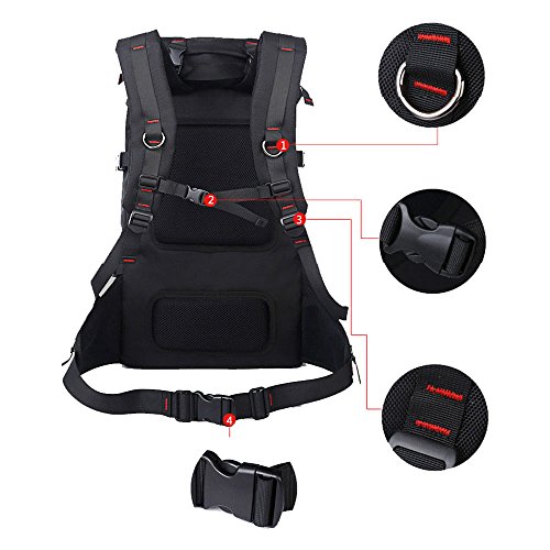 -. Feature : Dimension: Approx. 65*34*16 cm/25.6*13.4*6.3 inch (LxWxH) Capacity: 55L / Material: The backpack is made with ultra-durable sturdy water-resistant oxford fabric and padded shoulder straps are adjustable. / Structure: A total of 10 pockets. 1 main zipper Pocket, 2 front pockets, 2 sides mesh pockets, 1 laptop sleeve 2 small strap pockets and 2 small inner small pockets. / Comfort: The adjustable shoulder straps have excellent thick breathable mesh padding, and the chest strap with buckle enables the backpack to stay in a suitable place. / Multipurpose: Multiple options for carrying. You can carry many ways as a backpack, as a duffle bag, as a suitcase or a handbag. It is perfect for weekend trips, overnight trip, travel, short hiking, camping, business and school.