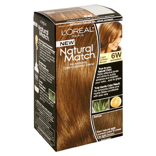 True-to-you, Natural Color: Adds reflective tones and shine to subtly enhance and brighten your color and no grays. Truly Gentle Color Result: No-ammonia creme plus Hydra-Gloss conditioner with aloe vera. Perfect for anyone who wants to subtly enhance and brighten their natural color. This shade, 6W, will give you a glossy, natural-looking light chestnut color filled with golden highlights. No-Ammonia Permanent Color-Calibrated Technology: Creates a completely unique shade spectrum that replicates the most beautiful hair colors and tones. Covers gray. Revolutionary Pro-Tip Applicator: Parts hair like never before to reach roots precisely and easily for drip-free application. Gentle Hydra-Gloss Conditioner: Deeply conditions, with aloe vera and green tea, leaving hair soft and glistening. Natural Match Kit Includes: Color-enhancing developer creme; No-ammonia color-calibrated creme colorant; Pro tip applicator; Gently Hydra Gloss conditioner; Colorist gloves; Insert.Feature