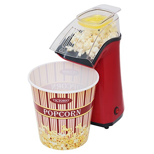 -. Binding : Kitchen -. Brand : Victorio Kitchen Products -. Color : Red -. EAN : 0811957011625 -. Feature : Cool touch Hot Air Popper in Firehouse Red / Makes 3.5 quarts in about 3 minutes! / Measuring cup also melts butter while the popcorn is popping / Broad base for stability on any level surface / Large clear plastic spout for easy loading and popcorn dispensing -. Label : Victorio Kitchen Products -. Manufacturer : Victorio Kitchen Products -. Model : VKP1162 -. PackageQuantity : 1 -. ProductGroup : Kitchen -. ProductTypeName : KITCHEN -. Publisher : Victorio Kitchen Products -. Studio : Victorio Kitchen Products -. Title : VICTORIO VKP1162 PopAir Air Popper, Red -. UPC : 811957011625