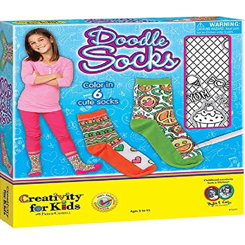 -. Feature : DECORATE SILLY SOCKS: Kids will love filling in the pre-printed designs on each of our 3 pairs of Doodle Socks. Use colors that match the soles of each pair of socks or create wacky and wild combinations! / BENEFICIAL SKILLS: It's important that young children develop necessary skills early in their life. Coloring in cool patterns on our Doodle Socks will help teach children hand-to-eye coordination, planning, preparation, creativity, problem solving, and critical thinking. / ONE SIZE FITS MOST: So nobody misses out on the fun of wearing these quality creations, our Doodle Socks utilize a cotton-poly blend that stretches to fit the feet of almost anyone. / INSTRUCTIONS FOR USE: Simply use any of the 4 markers to color in the socks however you want. Please note that the included pens' ink may stain fabric, furniture, skin, and other surfaces. Seek adult permission and assistance before you begin. Wear old clothes and cover your work surface with newspapers. / SPECIFICATIONS: Package includes (3) pairs of socks with green, red, and orange coloring, (4) permanent markers, and (1) set of instructions. Socks are 65% cotton, 32% polyester, 3% spandex. For ages 7 and up. / Decorate 3 pairs of silly socks / Kids love filling in the pre-printed designs / Cotton-poly blend socks stretch to fit your feet