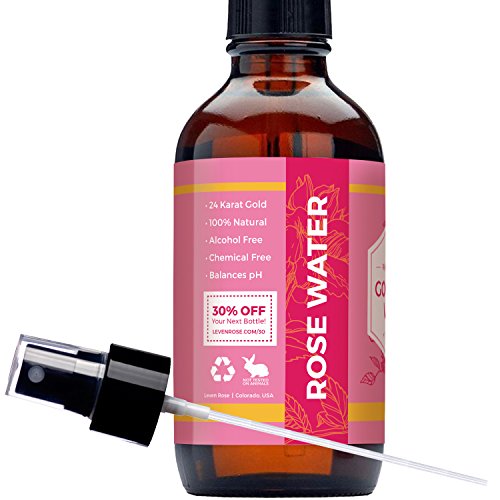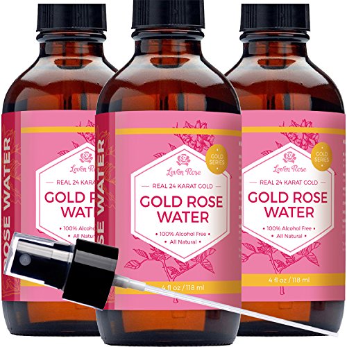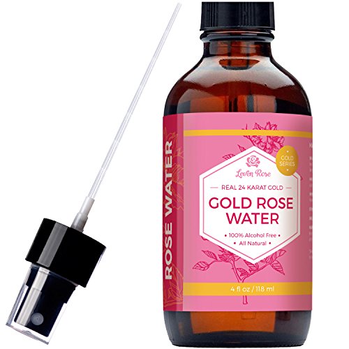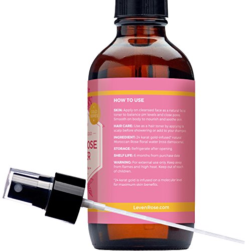 24K Gold Rose Water Facial Toner by Leven Rose, 100% Pure Organic Natural Moroccan Rosewater Hydrosol Face Spray 4 oz