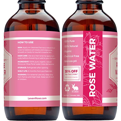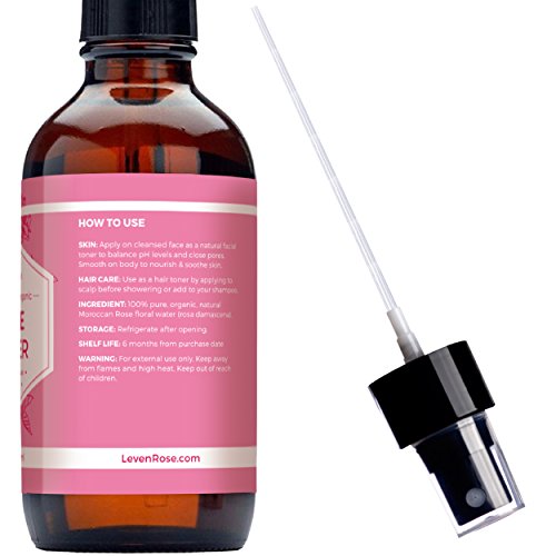 Rose Water Facial Toner by Leven Rose, 100% Pure Organic Natural Moroccan Rosewater Hydrosol Face Spray 4 oz