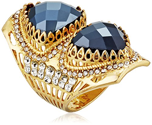 Metal a blend of copper and silver dipped in 22k yellow gold with hand set Faceted Black Spinel surrounded by clear Swarovski crystal