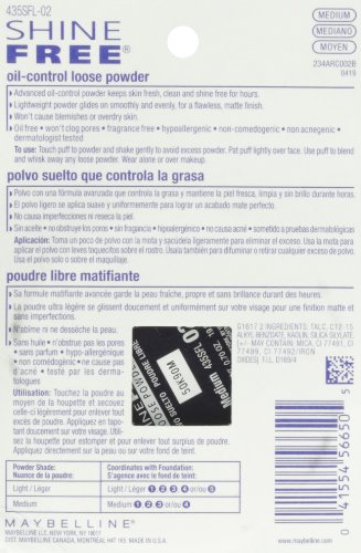 -. Binding : Misc. -. Brand : Maybelline New York -. Label : Maybelline New York -. Manufacturer : Maybelline New York -. ProductGroup : Beauty -. ProductTypeName : BEAUTY -. Publisher : Maybelline New York -. Studio : Maybelline New York -. Title : Maybelline New York Shine Free - Loose Oil Control Loose Powder, 0.7 Ounce