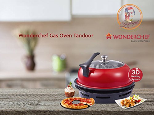 WONDERCHEF's Gas Oven Tandoor is a unique combination of Oven & Tandoor that works on your normal Gas Stove at your own home brought to you by Sanjeev Kapoor. Make grilled and tandoori veg. or non-veg. Kababs, Tikkas, Roasts. Tandoori Rotis, Naans, Parathas and other Indian dishes. Also you can cook cakes and bakes on your gas! Just an incredible range of cooking is now possible with this dream appliance everyone loves to have in their kitchen. Cook fabulous tandoori dishes & bake on your gas stove • Separate trays for baking & tandoori dishes • Odourless cooking with bare minimum oil usage without smok emission. • Easy to use & clean See through Glass Lid • 360 Degree heating ensures efficient Heat Distribution • Non-stick Pans for Healthy Cooking with less Oil • Easy to clean interiors and exteriors Specifications Brand: Wonderchef Tech Specs: Material - Aluminum with Non-Stick Coating & Heat Resistant Warranty: 2 years Type: Gas Oven Tandoor Package Contents Wonderchef Gas Oven Tandoor DUO - 1Pc Dimensions and Capacity • Aluminium cover with glass lid • Non-stick Tandoori pan • Non-stick cake baking pan • Carbon steel with enamel bodyFeature