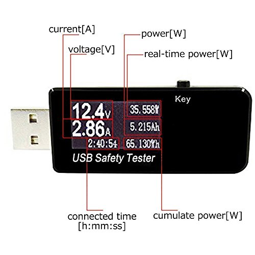 - [MULTIFUNCTIONAL USB TESTER]: USB Meter Tester is mainly used to detect USB charging current, voltage, discharge capacity, quantity of electric charge, power, timing and so on. Meanwhile multimeter USB detector can be applied to the Power Capacity Storage and Over/Low Voltage-current Protection. It allows you to find the charging problem of the USB cables, wall chargers, and car charges more easily.