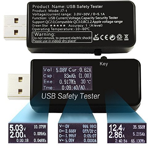 - [WIDE TESTING RANGE & SIMPLE OPERATION]:Input/Output Voltage: DC3-30V, Current Range: 0-5.1A. This portable USB tester is easy to carry and enables you to put it in your bag or your pocket whenever you go, along with the symmetrical and reversible connector for your simply operation.