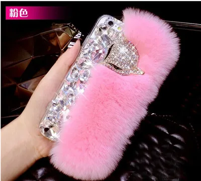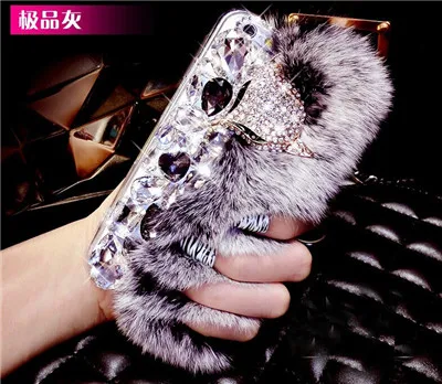 Features:Rabbit Fur Fox Head Diamond Case