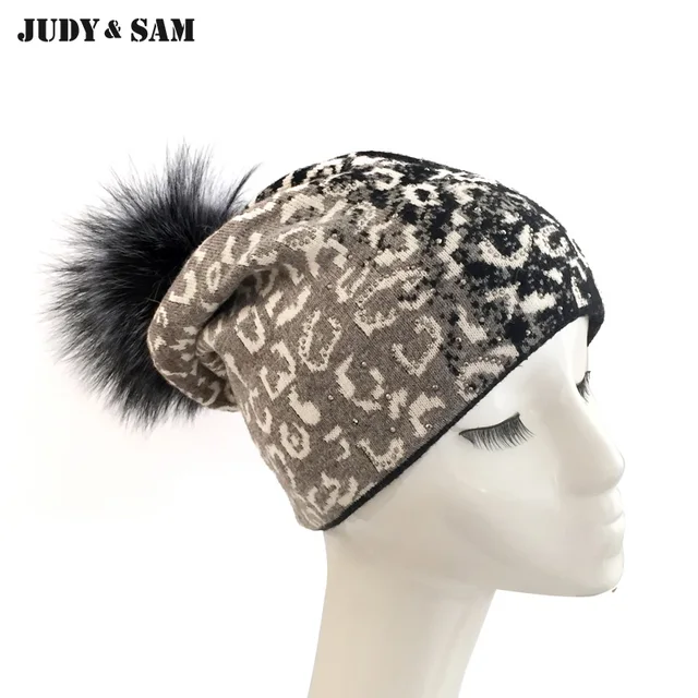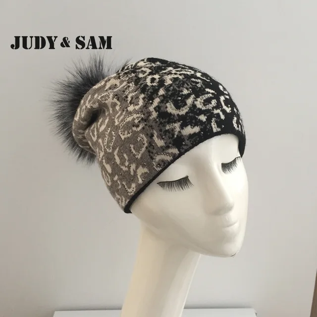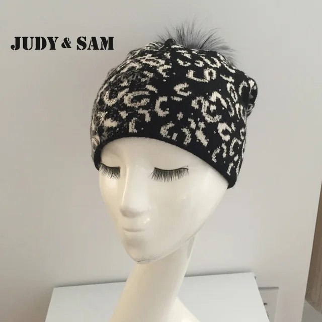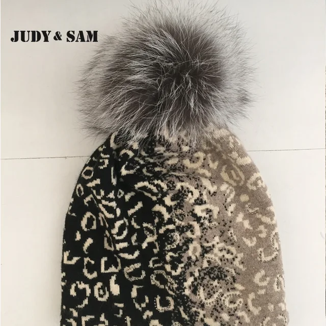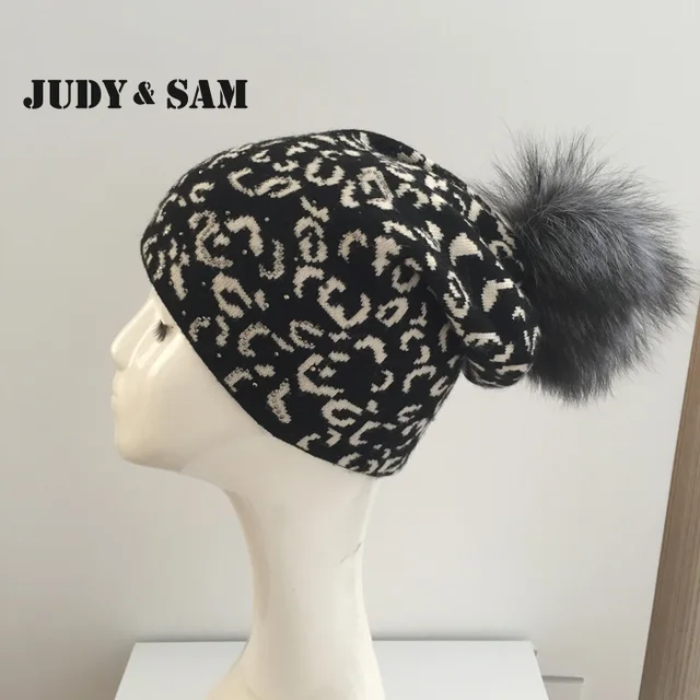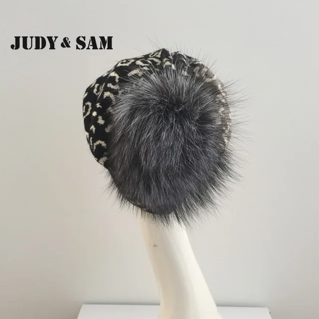 | [해외]뜨거운 판매 표범 새로운 스타일의 이발 비니 실버 여우 모피 응원 겨울 성인 앙고라 혼방 니트 모자 |