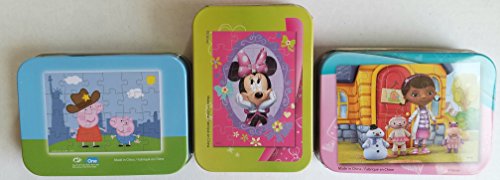 Studio : Cardianal Industries Publisher : Cardianal Industries Binding : Toy Product Description This makes a great gift for a girl who loves puzzles! Perfect for ages 4 , the puzzles feature Minnie Mouse (24 pieces), Peppa Pig (24 pieces) and Doc McStuffins (24 pieces). Three Mini Jigsaw Puzzles in their own illustrated travel size in cute tin cases. FINISHED Puzzle size is 5"x7 (12.7 cm x 17.7 cm) when completed so they are easy to use when traveling or on small surfaces. Each puzzle TIN CASE measures approx. 3 X 1 X 4 inches. Perfect Gifts for Easter Baskets, Birthday Treat, Halloween, Christmas or Any Other Gift Occasion! Collect them all! 0