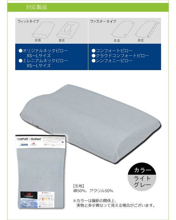 テンピュール枕を使っているならカバーにもこだわって!NASAの研究で生まれたアウトラスト(R)とテンピュール(R)素材をミックス。オールシーズン、ちょうどいい温度で快適な睡眠が得られます。重量/約100g カラー/ライトグレー素材・材質/綿50%、アクリル50%製造国/日本 ※サプライヤー直送品 ご注文後7~8営業日後の出荷となります【商品名】Tempur(テンピュール)(R)×アウトラスト(R) ピローケース(オリジナル・ミレニアム兼用)