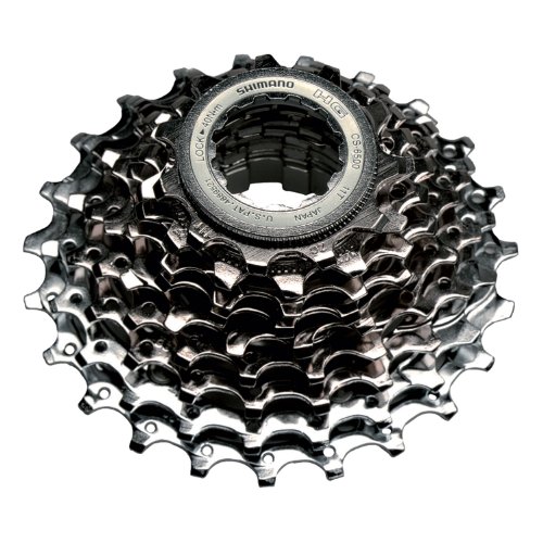 Studio : Shimano Publisher : Shimano Binding : Sports Product Description Five largest sprockets are mounted on two light alloy carriers to reduce weight and increase sprocket stiffness. Drilled out sprockets for less weight. Lightweight 9-speed sprockets provide a wider gear choice.