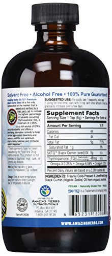 Amazing Herbs Premium Black Seed Oil (Black Cumin) is freshly cold-pressed (virgin-first-pressing) using only the highest quality NON-GMO and organically sourced Nigella Sativa seeds and is Guaranteed 100% Pure, Solvent-Free and Non-Refined.