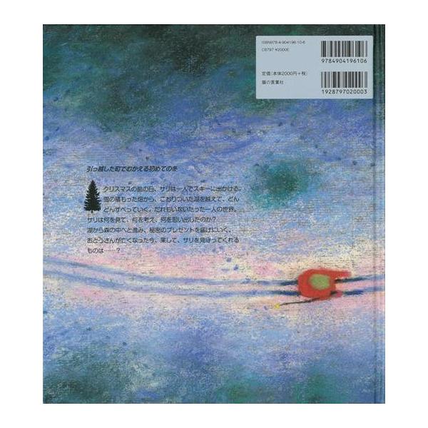 【商品説明】 定価(税込み):2,160円 値引き:10% OFF 引っ越した町でむかえる初めての冬。クリスマスの前の日、サリは一人でスキーに出かけます。雪の積もった畑から、凍りついた湖を越えて、どんどんすべっていきます。誰もいないたった一人の世界。サリは何を見て、何を考え、何を思い出したのでしょう?湖から森の中へと進み、秘密のプレゼントを届けに行きます。お父さんが亡くなった今、果して、サリを見守ってくれるものは・・・・・・? バーゲンブック 新品 特価 格安 冬 | |