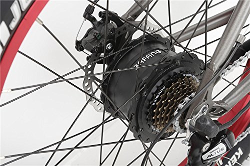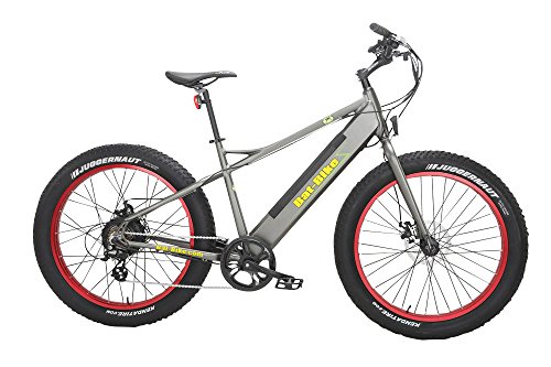 Studio : Bat-Bike Electric Bicycle Publisher : Bat-Bike Electric Bicycle Product Description Bat-Bike Big Foot fat tire bike tires float over terrain like snow or mud that is otherwise prohibitive to narrower treads. Also great for daily commuters. The battery is barely recognizable and increases the versatility, performance. The bike has both pedal assist and full throttle override giving you the flexibility and power when you need it. Equipped with a powerful 500W motor and a long lasting and light 36V 10.4 Ah Lithium Ion battery, the fat tire bike will give you the perfect e-Bike experience at speeds up to 20 mph and a 30 miles range per charge. The beautifully shaped aerospace aluminum frame available in multiple colors assures a lot of head turning. A true beauty with substance. Motor: BaFang 36V, 500W Brushless, Geared, Rear Hub Motor Battery: SANYO Cell 36V 10.4AH, Lithium-Ion Battery (frame integrated with security lock system) Integrated, water resistant USB Port Estimated Charge Time : 4-6 hours Max Distance 30 depending on rider input and rider weight and terrain Display: LCD Power On/Off, Battery Indicator, 1-5 Level Assist, Adjustable Power Speed Output, Km/Miles, Total/Trip odometer Drive Mode : Cadence Sensing Pedal Assist Level, Trigger Throttle Up to 20 mph with Full Throttle Override at all Levels; Walk Assist No Power Mode Bicycle Details Total Weight 55 lbs Frame : 26" 6061 Aluminum Alloy Fork: Aluminum Alloy Gearing Details / Shifter Details : 7 Gear Shimano Altus/ 7 Speed Shimano rapid fire Shifter Brakes Details : Tektro Novela Disc with 180 mm Front Rear Rotors, TEKTRO Levers with motor inhibitors Seat: Velo Plush Rims : Alloy CNC Side Double Wall Tires: Kenda 26" x 4.0" Accessories/Other Details : Single Side Kickstand, Integrated USB Charging port on Battery, Locking Removable Battery Pack, Quick Release Front Wheel, Front and Rear LED lights Maximum load 250lbs, ships 90%assembled just install front tire, peddles and handlebar 0