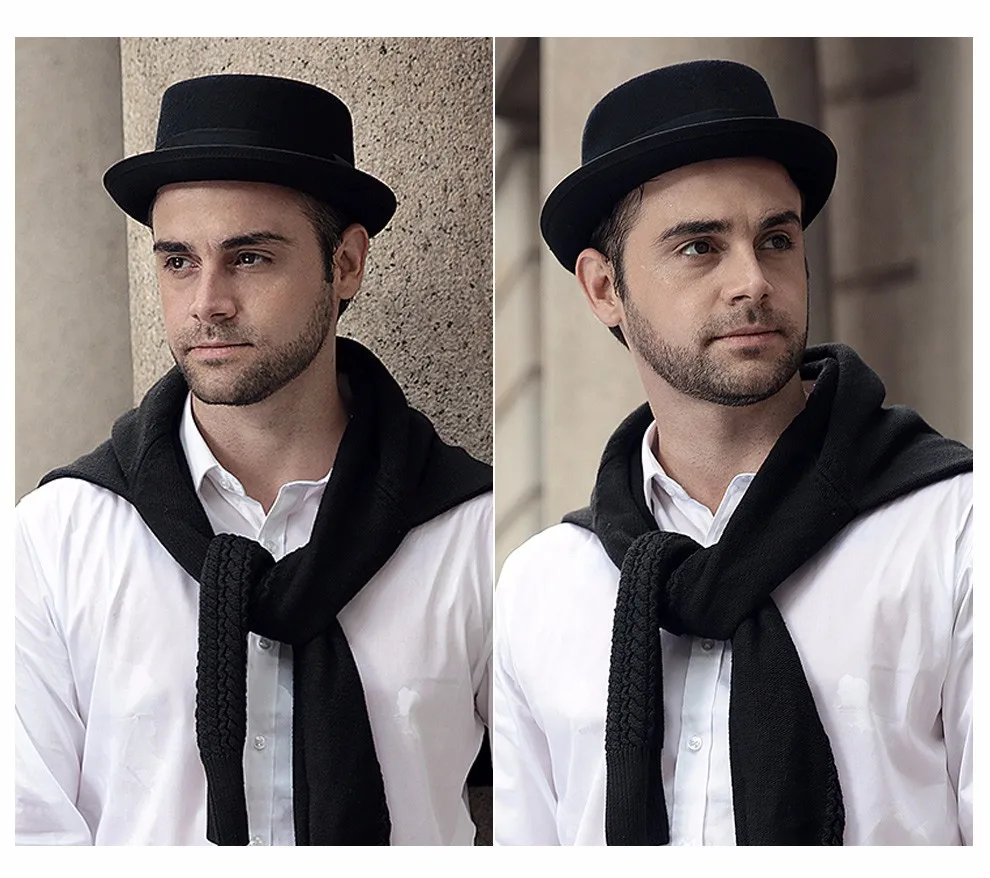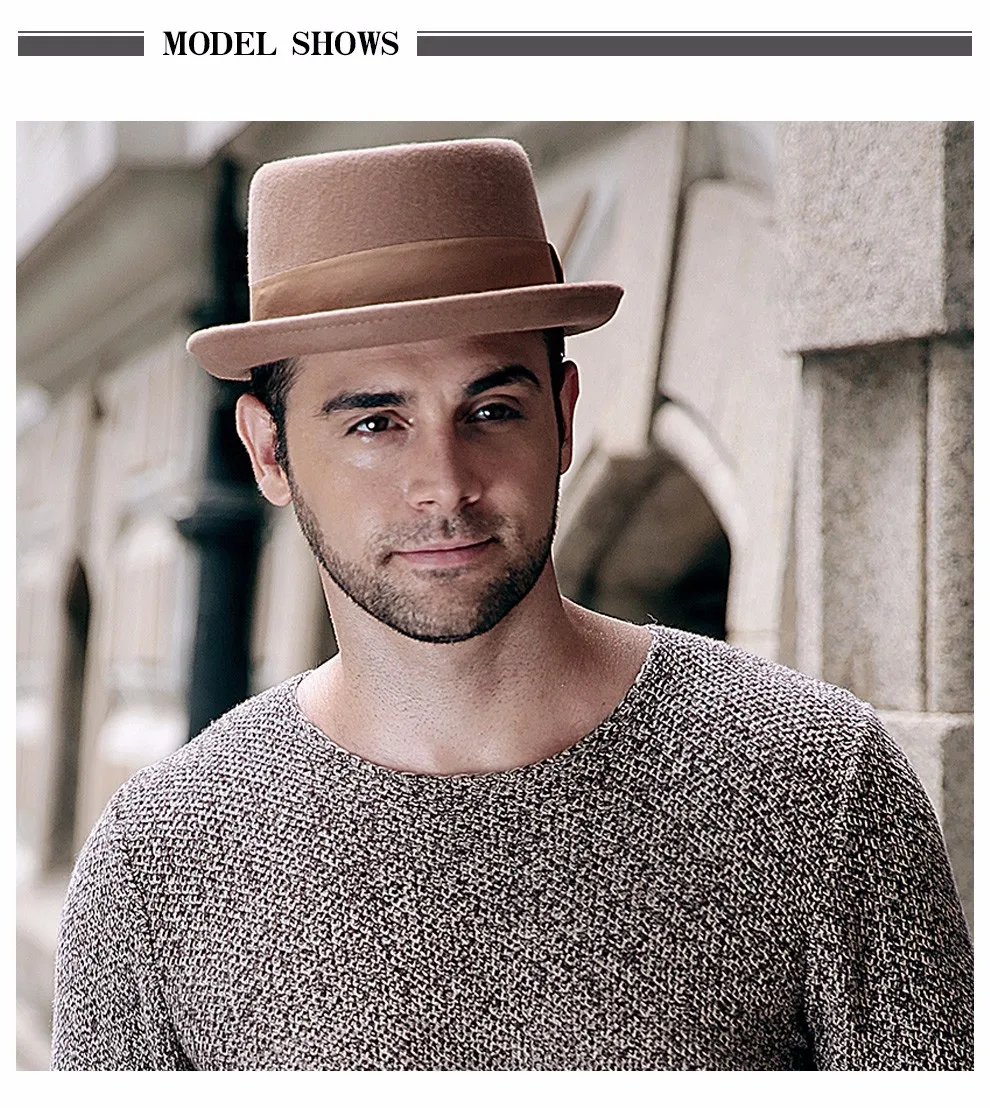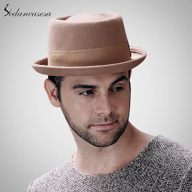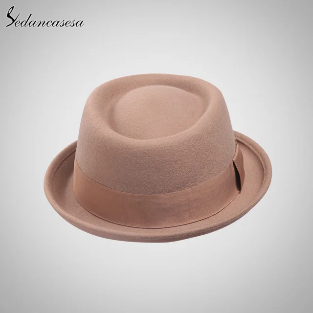 | [해외]Sedancasase 새로운 2017 패션 100% 호주 울 남성 페도라 모자 돼지 고기 파이 모자 함께 클래식 교회 울 모자 FM017028 |