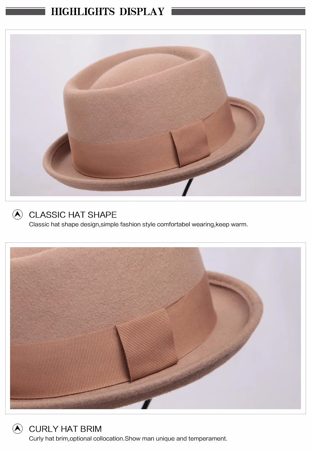 Sedancasase 새로운 2017 패션 100% 호주 울 남성 페도라 모자 돼지 고기 파이 모자 함께 클래식 교회 울 모자 FM017028 상품명: 페도라 모자 편안하고 자유롭게 호흡 소재: 100% 호주 울 모자 둘레: 57 센치메터, 59 센치메터 (조정 1-2 센치메터) 모자 챙 길이 약 3.5 센치메터, 캡 깊은 12 센치메터 아이템 조건: 100% 새로운 브랜드!! 포장 상세
