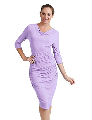 Womens Cowl Neck 3/4 Sleeve Ruched Day Night Dress
