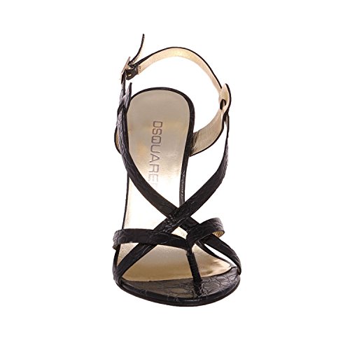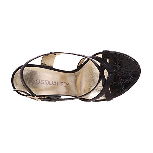 Genuine crocodile embossed leather upper, gold-tone leather lining with Dsquared2 logo; Leather sole.