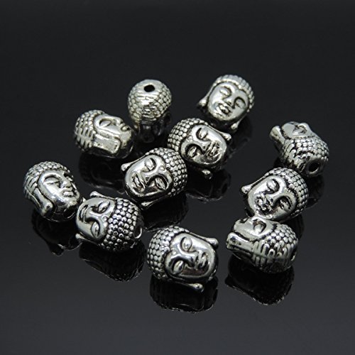 30pcs Antique Silver Tone Alloy Buddha Head Bead Tathagata Decor Jewelry Findings